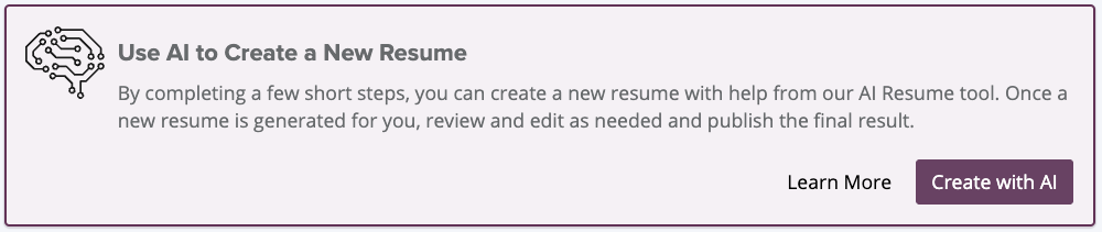 Resumes are often the most difficult place to start when applying for new roles. Using AI to create a new resume makes getting started, easier. By completing a few short steps, you can create a new resume to help you land your next role.