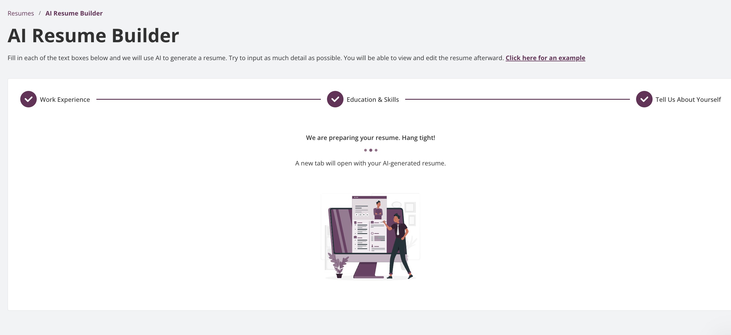 Click Generate Resume to create your resume (will open in a new tab).